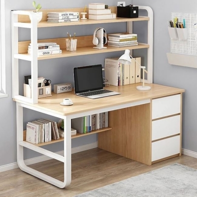 ΓΡΑΦΕΙΟ Η/Υ 3 Συρτάρια 3 Ράφια Μέταλλο Βαφή Άσπρο, MDF Απόχρωση Φυσικό